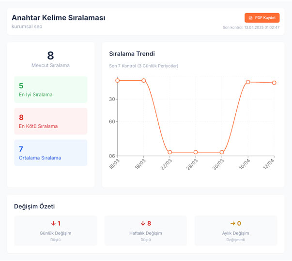 Hedeflediğiniz anahtar kelimelerin sıralama değişimlerini takip edin.