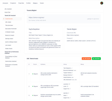 Sayfanızdaki içerik ve görseller SEO uyumluluğu açısından kontrol edilir. İçerik kalitesi, anahtar kelime yoğunluğu, görsel alt etiketleri ve dosya adı gibi faktörler değerlendirilir.