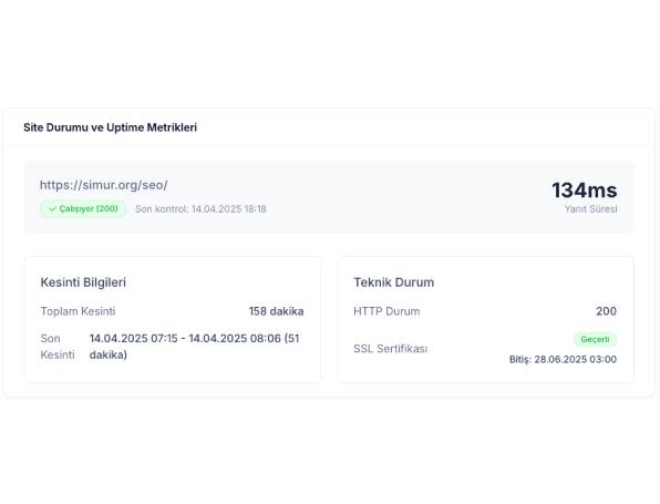 KAF, her 10 dakikada bir URL'ye ping atarak web sitenizin uptime değerlerini sürekli izler ve olası sorunları erken tespit ederek zamanında aksiyon almanıza olanak tanır.